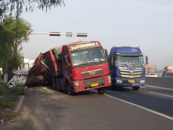 5月7日早上,在临菏路和西浦路交汇处和交汇处北约三百米处,接连发生两起重载大货车侧翻事故,幸无人员伤亡。