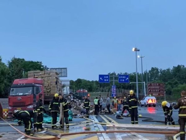5月28日凌晨3时10分,在浙江交通集团金丽温高速岭下朱收费站副站,一辆安徽车牌的申通快递重型半挂车,运载有20吨左右货物,在收费站入口处着火并产生数次爆炸。险情之下,金丽温高速工作人员快速反应,有效控制了损失,此次事故未造成人员伤亡。