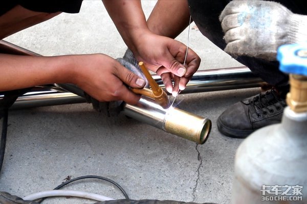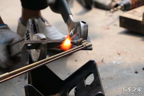 第二步:水管焊接。整车水路走向较为复杂,需对水管进行折弯、焊接重新布局。由于需要焊接处理的地方较多,为了保障水路密封性,一定要找专业的焊接师傅进行操作。在焊接完成后,必须对管路进行气密性测试,避免液缓后期使用中出现漏液,导致液缓失去制动力。