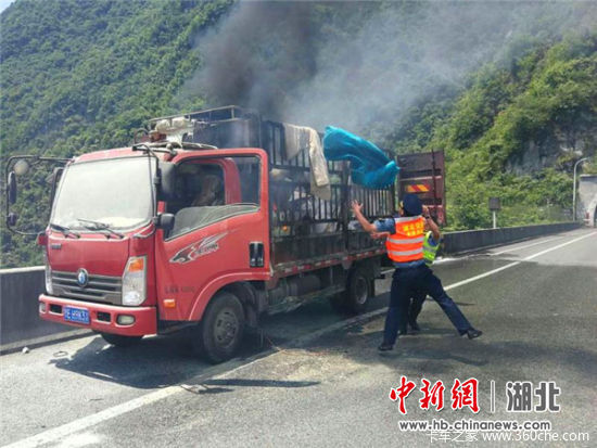当天上午11时30分,鄂西路政二大队接警称,沪渝高速渝沪向K1303+700M(庙垭隧道内)一辆车牌为鄂EH9K31轻型货车拖运冰箱、空调等家用电器,在庙垭隧道内发生自燃,车身浓烟弥漫,存在极大安全隐患。
