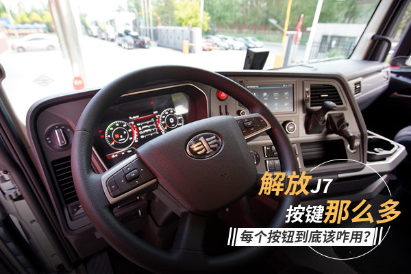 解放J7重卡自上市以来,一直都挺受大家关注的,但是很多卡友还没有真正登上这款车看看,实际上J7有很多的按键设计,今天我们就以解放J7的一款高配车型为例,给大家说说,所有的按键都是控制什么的,应该怎么使用。