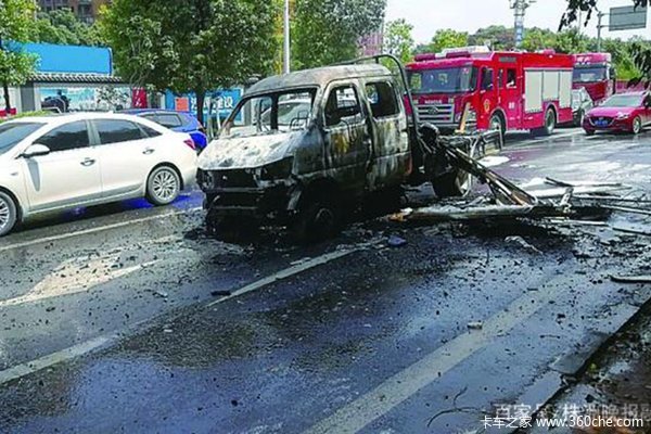 石峰区消防中队指挥员燕泓宇说,他们到场后,小货车的油箱再次发生爆燃。为了避免发生二次事故,他们赶紧封锁现场,并出动水枪灭火。10分钟后,火势被成功扑灭,但小货车已被烧成“铁架子”,车上载的一些家具也被烧毁。