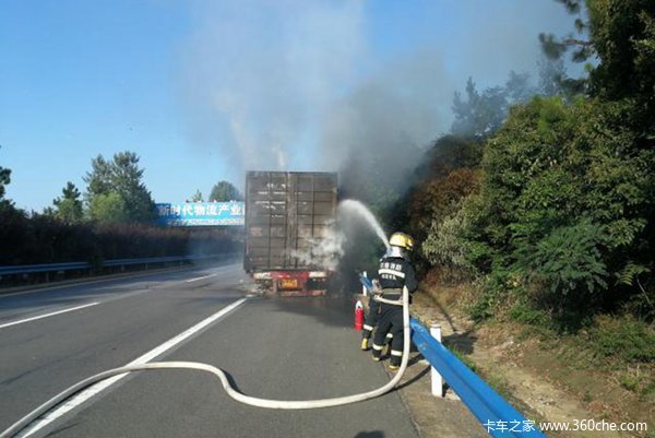据司机介绍,该车是发往杭州,在行驶途中发现后面冒烟,于是停车查看火情后报警求助,车内装在的为某物流公司托运的快递物品。