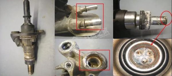 尿素喷嘴明显有出现堵塞的情况,决定更换尿素喷嘴总成。在依次检查尿素喷嘴座面如图所示: