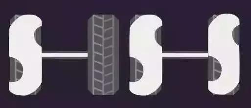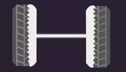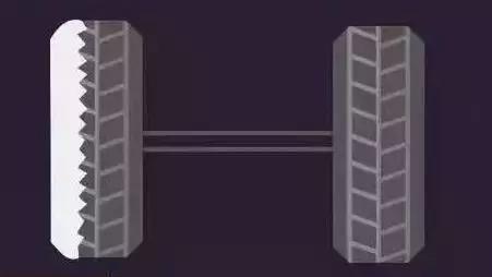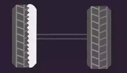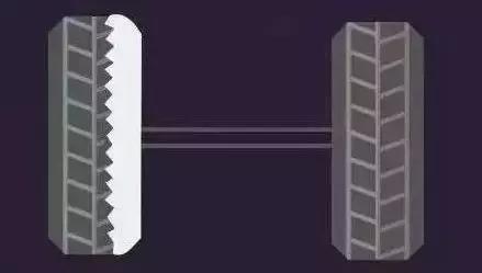 吃胎现象:同轴上的两个轮胎,内边不正常磨损。