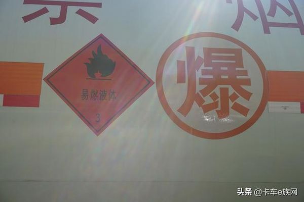 除了在车上增加这么多设备来保障司机和货物的安全外,危化品运输车也为路上其它行人的安全充分考虑。在危化品运输车的厢体上,都会贴有危化品种类,来提示大家这玩意碰不得。