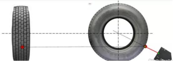 5、移动传感器支架,使激光点落在合适位置。位置要求:激光束与轮胎侧面平行;光束通过轮胎的圆心;光点落在轮胎中间花纹上,如果花纹数为偶数,则分别测量中间两条花纹。
