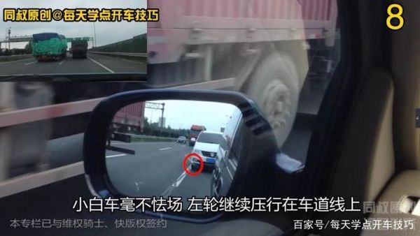 小白车这一些列的动作包括了近距离跟车,左边与大货车近距离跟行,抢行插孔,强行超车等诸多危险驾驶因素,特别是在大货车如潮的道路上行驶,哪怕是和大货车有轻微的接触都会使这辆体重轻盈的小白车打几个滚,这个冒险确实不值得。