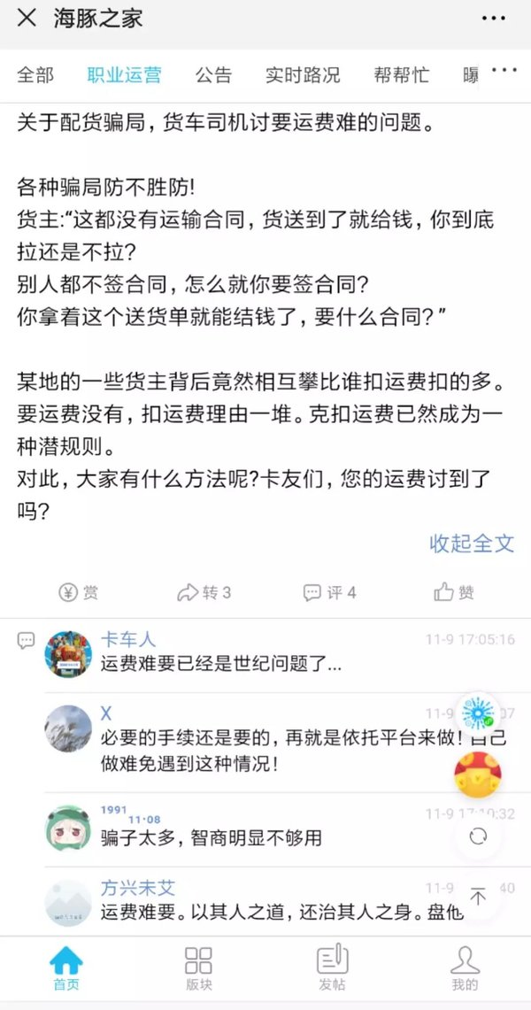 关于“‘真假’配货信息、讨要运费难”的这一话题,我们的海豚之家社区里,也是引起了广泛的热议,广大卡友也是纷纷表达了自己的看法。