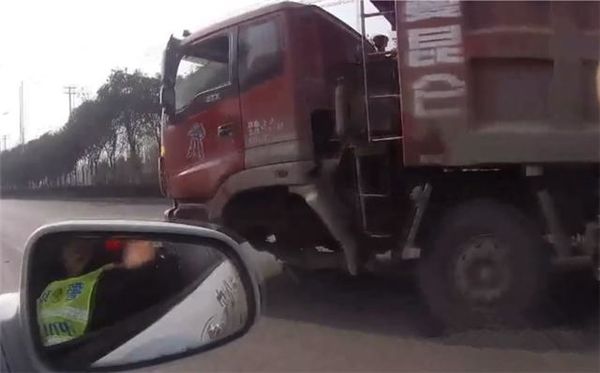从视频画面上可以看到,该货车是属于后驱重型货车,这种车虽然说主要靠后轮驱动,前面两个轮子只是起导向作用,也不用支撑驾驶位重量,但如果在这种情况下上路,一旦发现突发情况,根本没办法进行规避,刹车也大受影响,其中的危险性是不言而喻的,从这方面说,这名司机确实有点“胆大包天”,是拿命在开车。