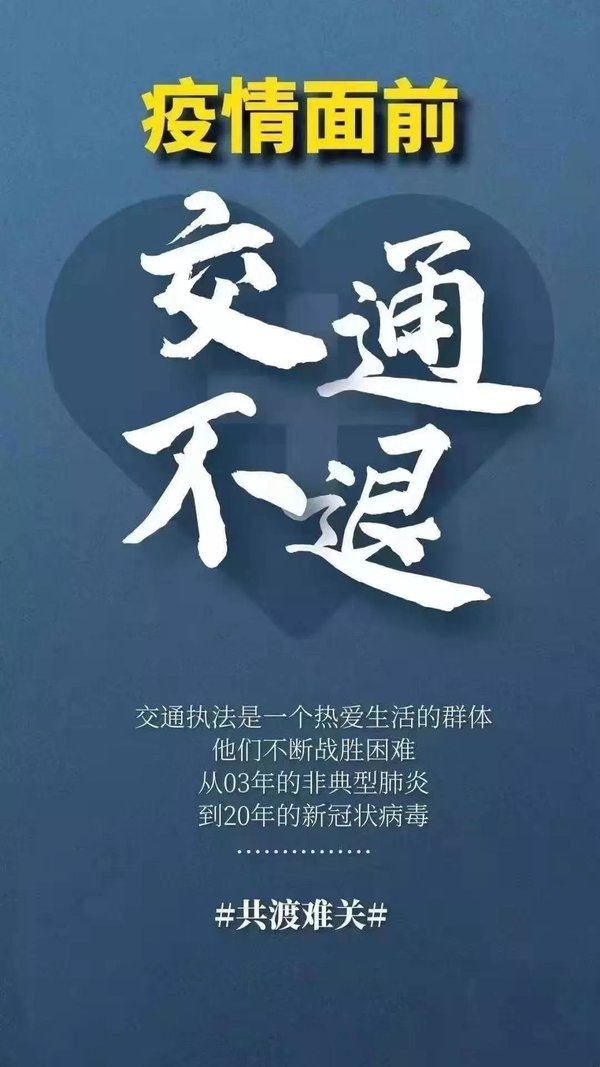医务工作者无怨无悔,交通执法人也同样无怨无悔,惟愿交通人都能平安回家!