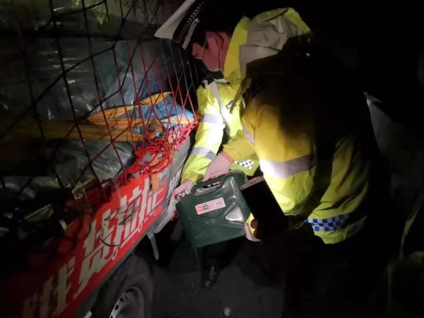 2月6日凌晨,一辆运输抗疫应急物资的货车从安徽阜阳开往湖北襄阳,因错过加油点,在沪陕高速信阳罗山段抛锚。信阳高速交警民警钱刘元带领辅警何威、冯正昌、陈嘉顺赶到现场发现,车上载的是一批应急设备,是襄阳急需物资。