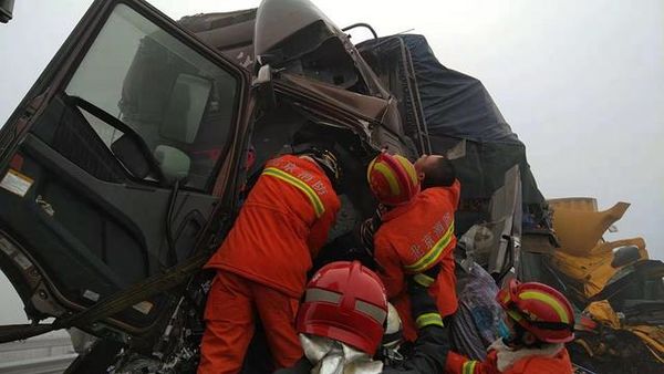 北京通州区西集镇首都环线高速进京方向35公里处,昨天发生三辆大货车连环追尾事故,中间货车中两名男子被困。通州区消防救援支队的指战员经过四个多小时的破拆救援,成功将两人救出。营救过程中,靠近被困人员身体时,消防员为防止二次伤害,放下器械,用手一点点地破拆。
