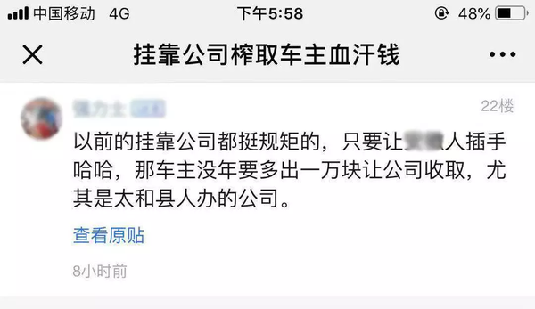 用户由于挂靠公司收费过高难以承担想退出,或者想卖车需要过户时,挂靠公司的过户费堪比天价,更加令人难以承受。卡友调侃说:“过去青楼女子赎身也不过如此吧!”
