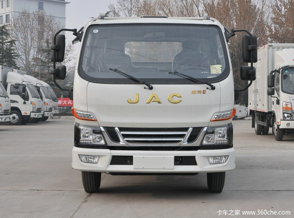 江淮骏铃V6车型使用最新研发的180车架平台,车架截面尺寸180*65*4.5mm,车架尾部开档达到800mm,后桥为5吨级冲焊桥,后桥速比可选5.571和4.875两种,拉货多一点就选大速比,拉货轻一点就选小速比。