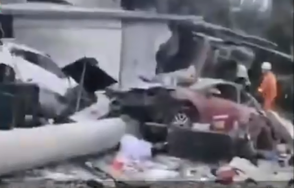 被撞后,现场一片狼藉