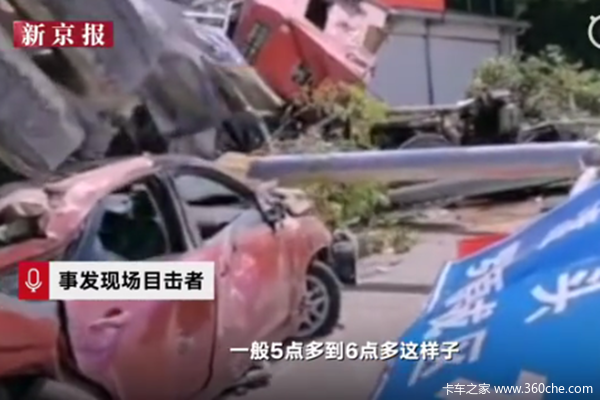 该车运载水泥管桩,遇到长下坡路段刹车失灵撞向民房。现场目击者称,车辆还冲撞到当地一正在营业的集市。