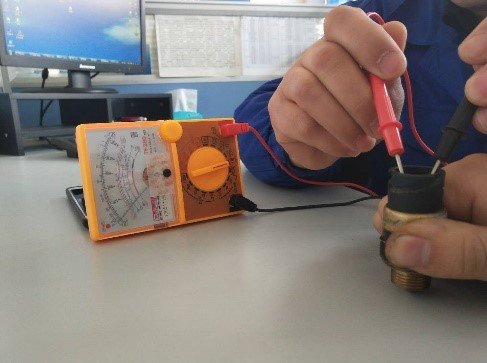 步骤三:检测点一:压力开关探头自由状态下,万用表发出“蜂鸣声”、且表头指示灯亮;