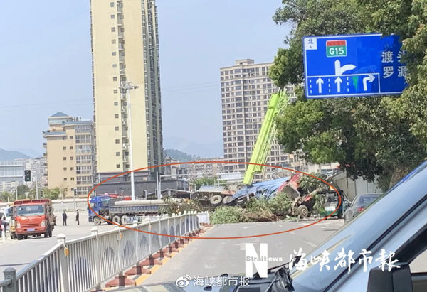 在4月13日6时许,104国道罗源渡头段,一部车牌号为闽A5K***重型半挂牵引车运载水泥管桩,遇长下坡路段刹车失灵、车辆失控后偏离主车道,侧翻撞上路边2栋民房,造成货车驾驶员及群众共9人死亡、8人受伤。