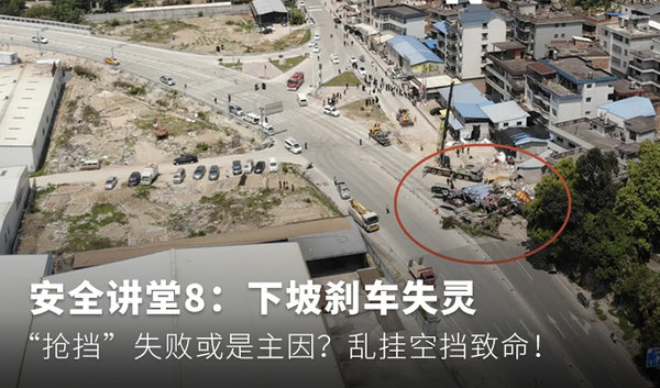 猜测在下坡时,作为老驾驶员,车辆档位不会很高,但因车辆载重较大让车速越滑越快,加之可能刹车出现热衰退失灵,驾驶员尝试刹车无果后。想通过降低档位通过发动机来“钳制”车速,但奈何车速过快无法成功“抢挡”,从而导致悲剧的发生。