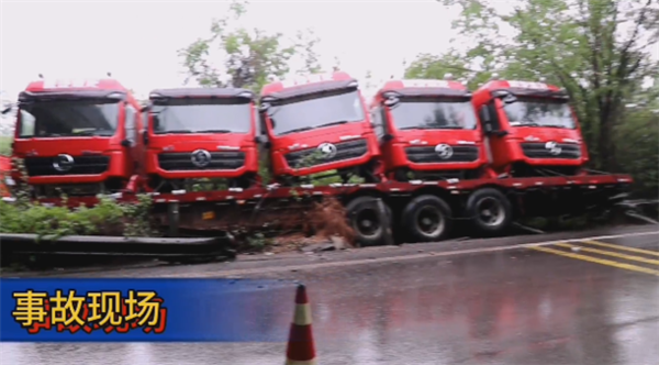 ▎雨天路滑车速快,商品运输车急刹失控,冲出高速公路
