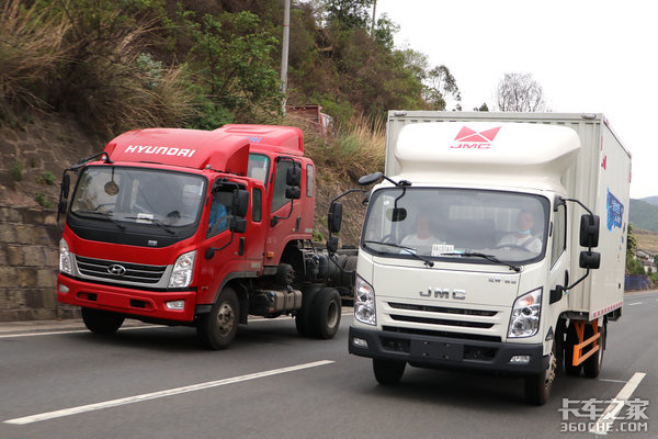 路上我们还遇到了一台来自现代商用车的泓图300轻卡,虽然它是一辆合资产品,但与我们的江铃凯运蓝鲸行驶在一起,丝毫感觉不到它们的气场有多强,反而是我们的江铃凯运蓝鲸在气势上更胜一筹。