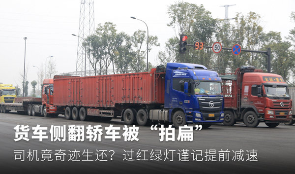 ▎货车侧翻 轿车被压成饼状
