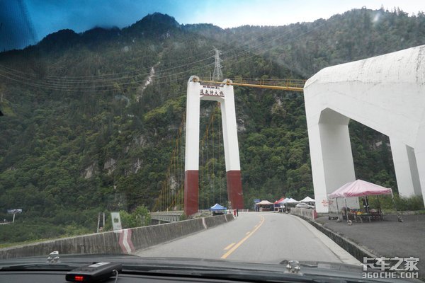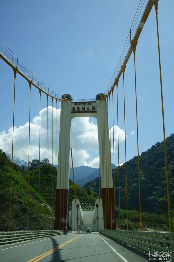 我们首先经过的是通麦特大桥,通麦特大桥是一座单塔单跨悬索桥,全长415.8米,主跨为256米,高59.5米。