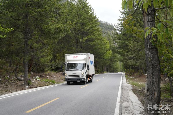 318国道已经不是以前的烂路了,这一段穿林而出的318国道的路况就十分好,柏油路面配合7.50R16的真空胎,胎噪很小,凯运蓝鲸车辆行驶的品质很到位。