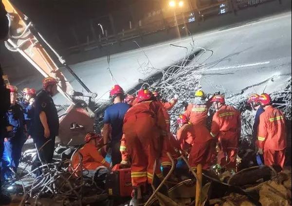 报道显示,2019年10月10日下午18时许,江苏省无锡市312国道上海方向锡港路上垮桥出现桥面崩塌。因正值下班高峰期,桥底至少有3辆私家车被压。现场视频显示,上垮桥系整体坍塌,一层面出现严重倾斜,预计坍塌长度百米左右。多名目击者表示,坍塌路段为无锡重要交通路段,平时上下班高峰期时,该桥车辆通行量较大。