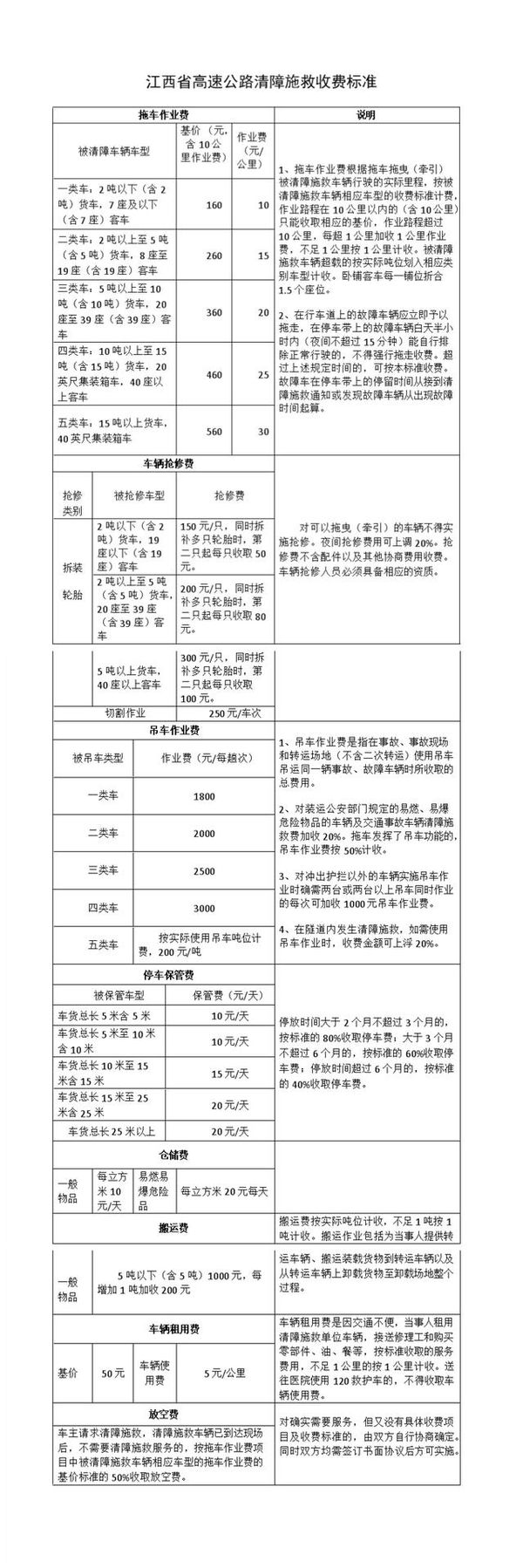 【卡车之家 原创】天价高速救援费屡见不鲜,卡友也吃了太多高速救援的苦。高速公路内,车辆如发生故障或事故,期间实施救援服务收费必须按照《江西省高速公路清障施救收费标准》执行。