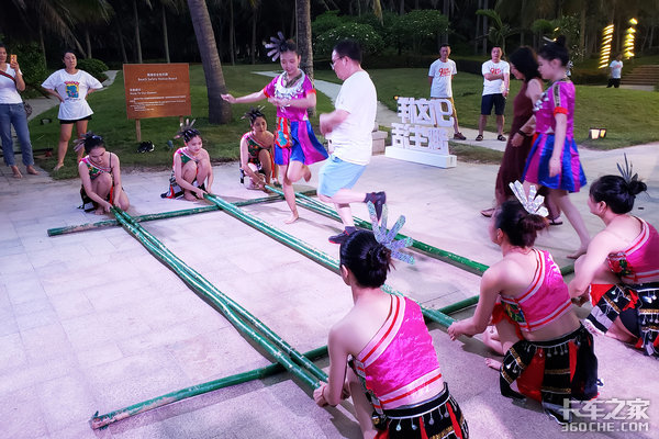 如果说菠萝地考验的是江铃域虎9的越野能力,那么,竹竿舞考验的显然是来宾的“越野”能力了。