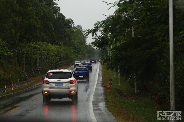 虽然雨水一路都未停歇,但是并未耽误车队行进的脚步,江铃域虎9搭载的汽、柴油发动机,无论在城市道路还是高速公路,都有着不俗的动力表现。