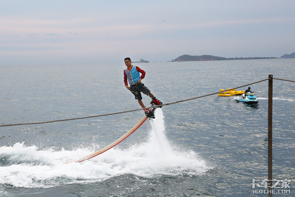 “水上飞人”表演,表演者可以通过水上飞行器完成直立形态,并且还可以做出多种高难度动作,真是佩服他的身体协调性和过人的胆量。