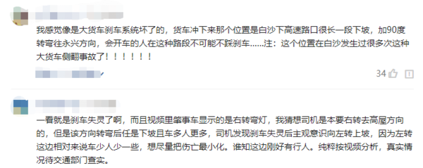 有卡友通过观看视频表示,该路段是下坡路,大货车疑似刹车失灵。