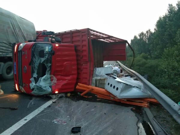 与此同时,民警调取了事发时的监控视频发现事故并没有这么简单。从监控视频可以看出,前车司机伦某驾驶轻型货车在第二车道匀速正常行驶,此时后方同在第二车道的重型半挂货车以较快速度驶来,在未减速的情况下突然向左转向,因躲避不及追尾前方正常行驶的轻型货车,导致前车遭撞击后发生侧翻,该事故造成两车不同程度受损、货物受损、无人员伤亡。