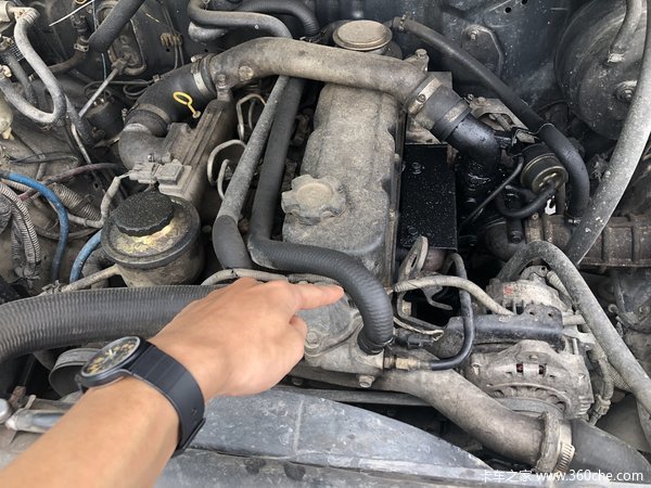 水箱上水管位置附近的一条通往驾驶室内的暖风管出现了裂痕,仔细一听有些类似高压锅泄气时高压力的“哧哧声”,不过由于声音不大,也没有看见疑似冷却液的液态流出。
