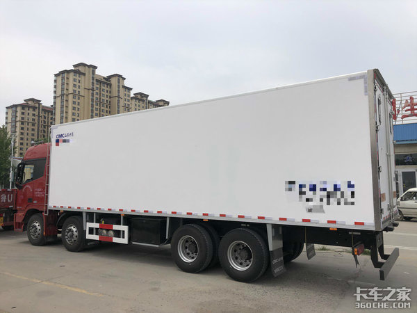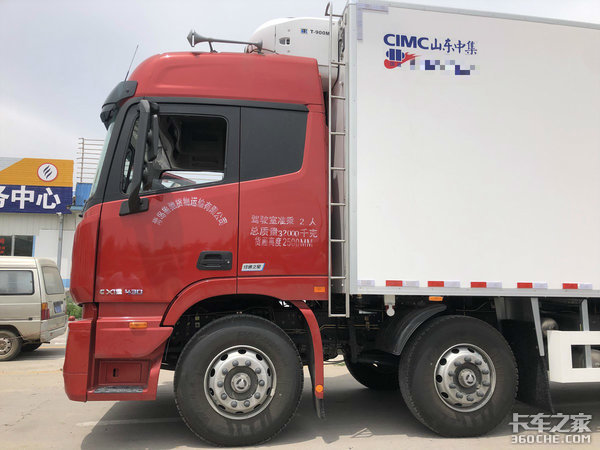 现在购置主流上装厂的冷藏箱体最主要的原因考虑到轻量化材质兼具耐久性和可靠性,整备质量在12.8吨,在国家要求范围内运输19吨货物绰绰有余。