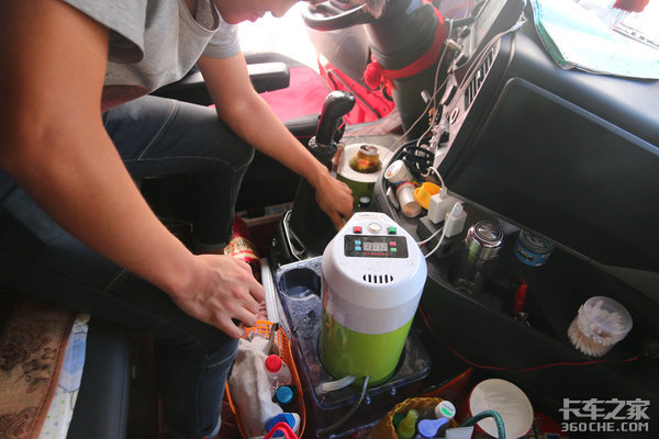 回到车上,张师傅接了一根水管向储水容器内进行加水,可以看到,张师傅在车上配备了多个电源插座,对于长途运输来说,这些可是很有必要,便于煮饭、烧水、充电等。