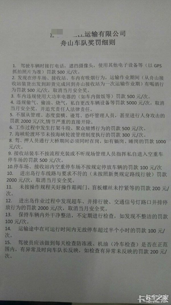 除此之外,也有卡友在卡友圈晒出了自己所在的运输公司的奖罚细则,其中基本上都是各种罚款细则,卡友直呼“赚钱真的太难了,本来挣得就少,到哪都容易被罚款”。
