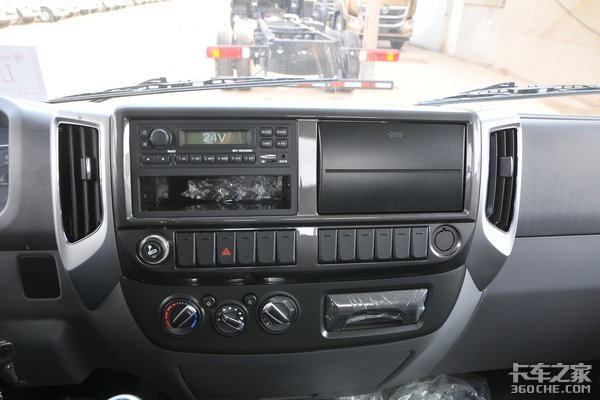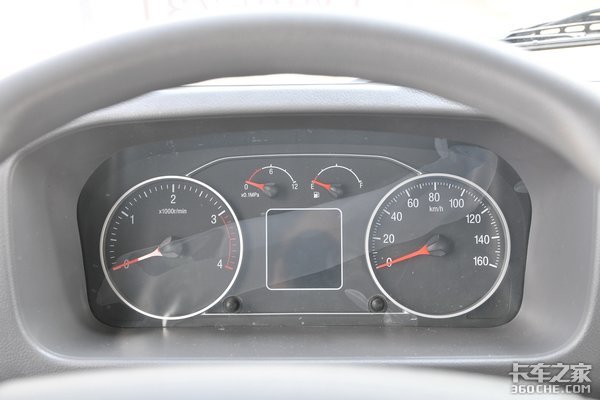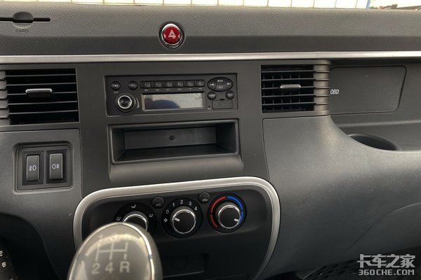 因为是用来跑短途运输的,司机并不需要在车上生活或者长时间驾驶,所以内饰方面,整体偏向于实用。四幅式方向盘,表面采用磨砂处理,提高对行车方向的把控,不过没有配置多功能按键区域,还是有那么一丝丝的不完美。