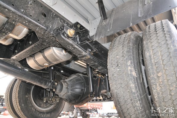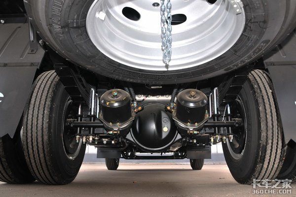 这款车底盘高度为180×70×4mm,采用了前8后6+6的弹簧结构,5T的后桥,速比为4.875。油箱采用复合材料材质,容量为130L。装配了7.00R16LT型号的轮胎,并配置了铝合金轮圈,极大程度上到达降低自重的目的。