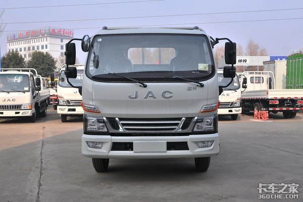 这款车型采用江淮家族式骏铃系列轻卡造型,前脸没有太多的线条设计,硕大的镀铬JAC标识使得整个前脸的辨识度十足。全车白色涂装搭配着银色镀铬标识和双U形状镀铬中网让它看上去多了几分精致感。
