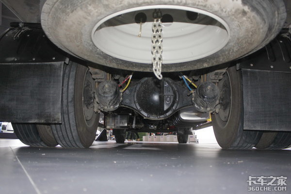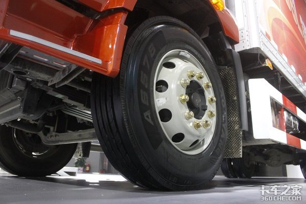 油箱采用铝合金材质,容积达到了400L。不仅减少路上加油的次数,使续航能力大大提升,而且铝合金材质降低了自身的重量。轮胎是装配了275/80R22.5型号的朝阳牌真空胎,其特点就是耐用和省油,可以节约成本支出,并且配置有轻量化轮辋。