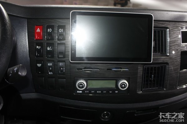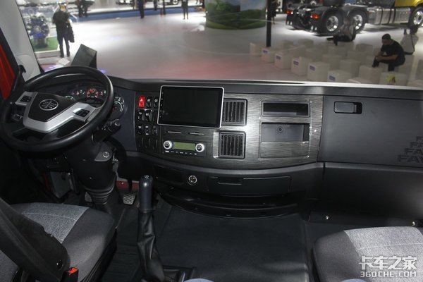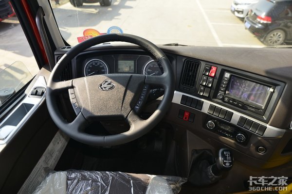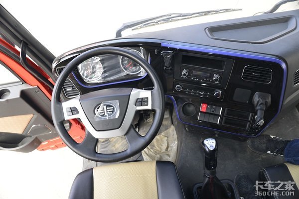 配置方面,四幅式多功能方向盘、中控锁、电动车窗、双卧铺等一应俱全。不过稍有遗憾的是中控台没有配置液晶显示屏,但常用的功能都有。值得一体的该车的断气刹是设计在中控台上的,方便驾驶员的操作还能节约出驾驶室中间的空间。