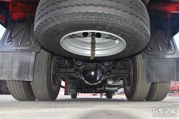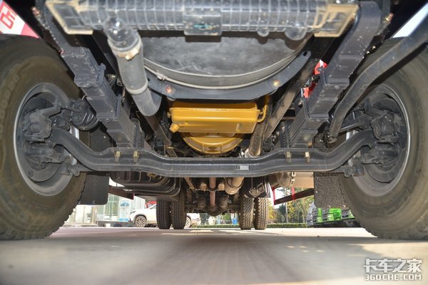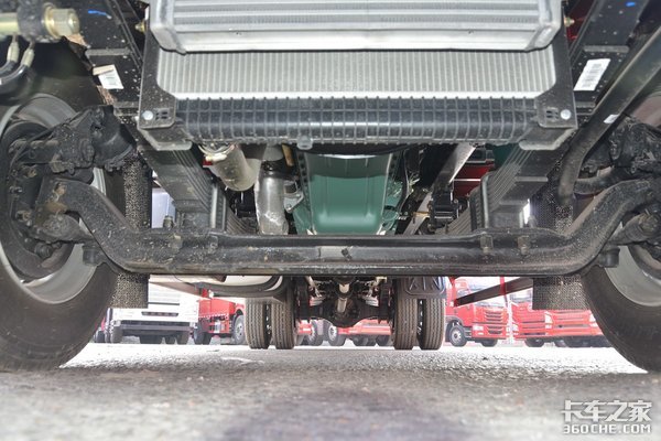 这款车采用5T前桥和378铸造后桥,速比为4.111,悬架的板簧采用7/10+3。油箱则是采用铁质材质,容量为300L,轮胎是装配了275/80R22.5型号的真空胎,此型号在中卡载货车领域广泛使用。