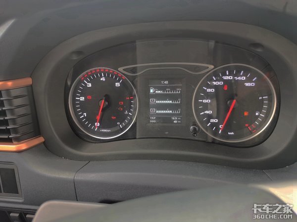 双筒式仪表盘中间配置了一个小的显示屏,两个圆盘还有中间显示屏很清晰的显示着车况,方便驾驶人员对车辆信息的实时读取。