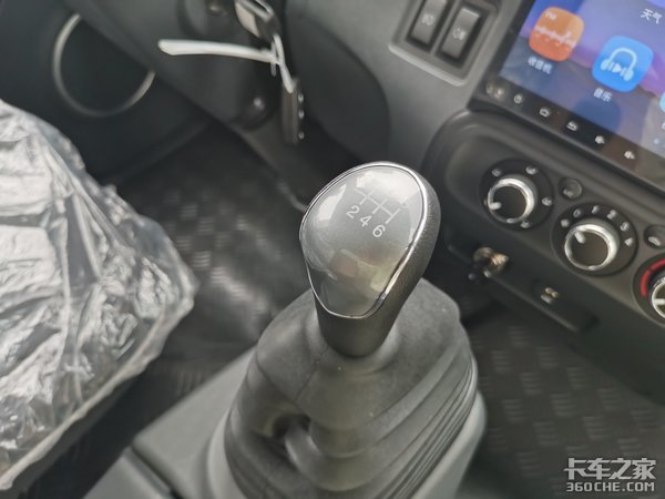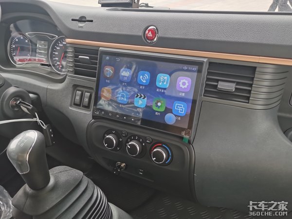 中控台设计了较长的金色镀铬条,整体看上去很立体,有点类似乘用车中控台的设计。实拍车型配置有10.2液晶显示大屏,导航、影音娱乐、蓝牙、倒车影像等功能齐全;紧接着就是空调调节系统及其他功能控制按键。