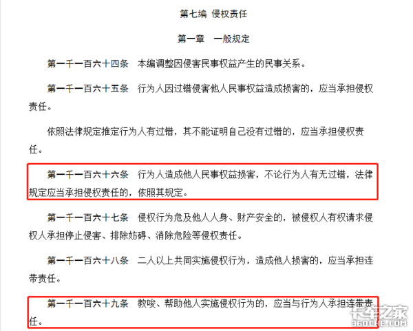另外,在《民法典》中有规定,当行为人造成他人民事权益损害,不论行为人有无过错,法律规定应当承担侵权责任的,依照其规定。简单地说,承运人对运输安全是有责任的,如果违法超载那么司机肯定逃不开关系。