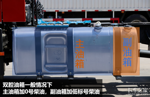 双腔油箱对于北方的卡友来说,因为主、副油箱可以加注不同标号的柴油,所以既降低了我们的燃油成本,又不影响车辆的时效性,而对于南方的卡友来说,使用双腔油箱,更多的是将副油箱作为一个备用油箱,主要是提高车辆的续航能力。(文/位青波 图/卡车之家)